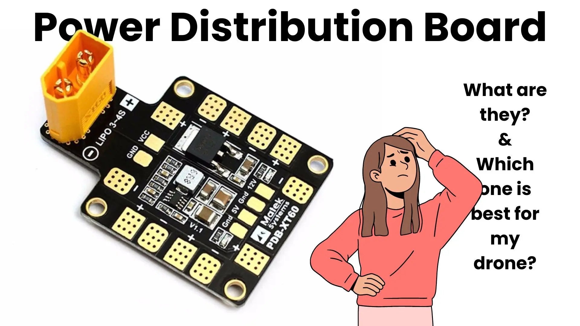As the name suggests, the FPV Drone Power Distribution Board is a printed circuit board designed to distribute power from the flight battery to all the various components of your multirotor. Originally, PDBs were simple copper PCBs with an input and multiple outputs, but as the demand for more regulated voltage supply grew, manufacturers began integrating voltage regulators onto the boards.